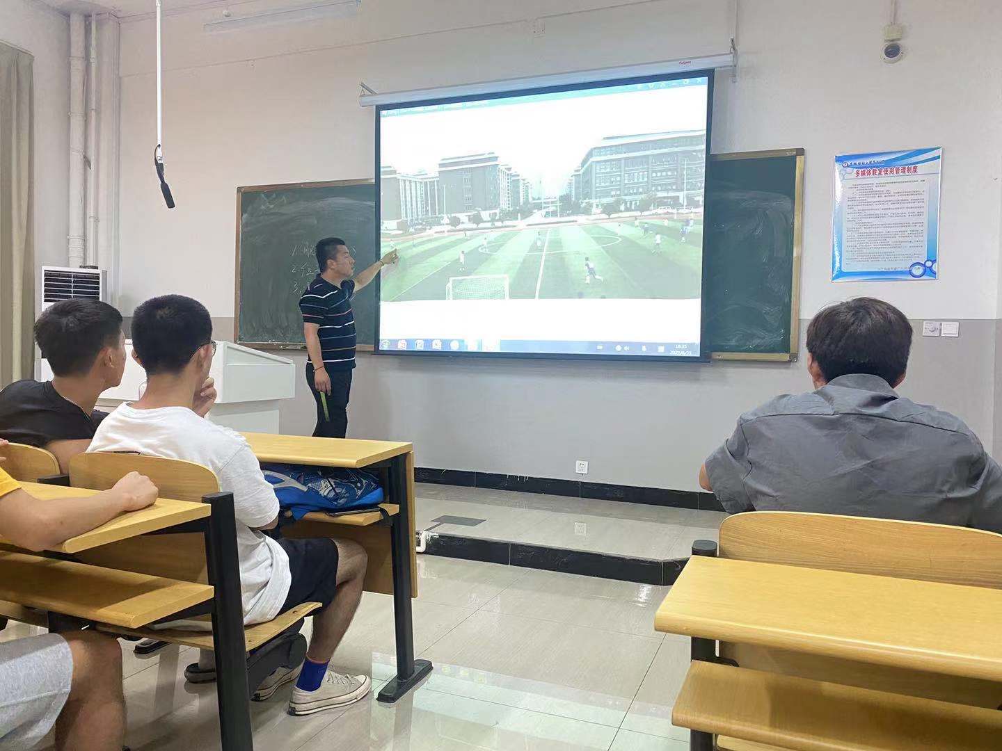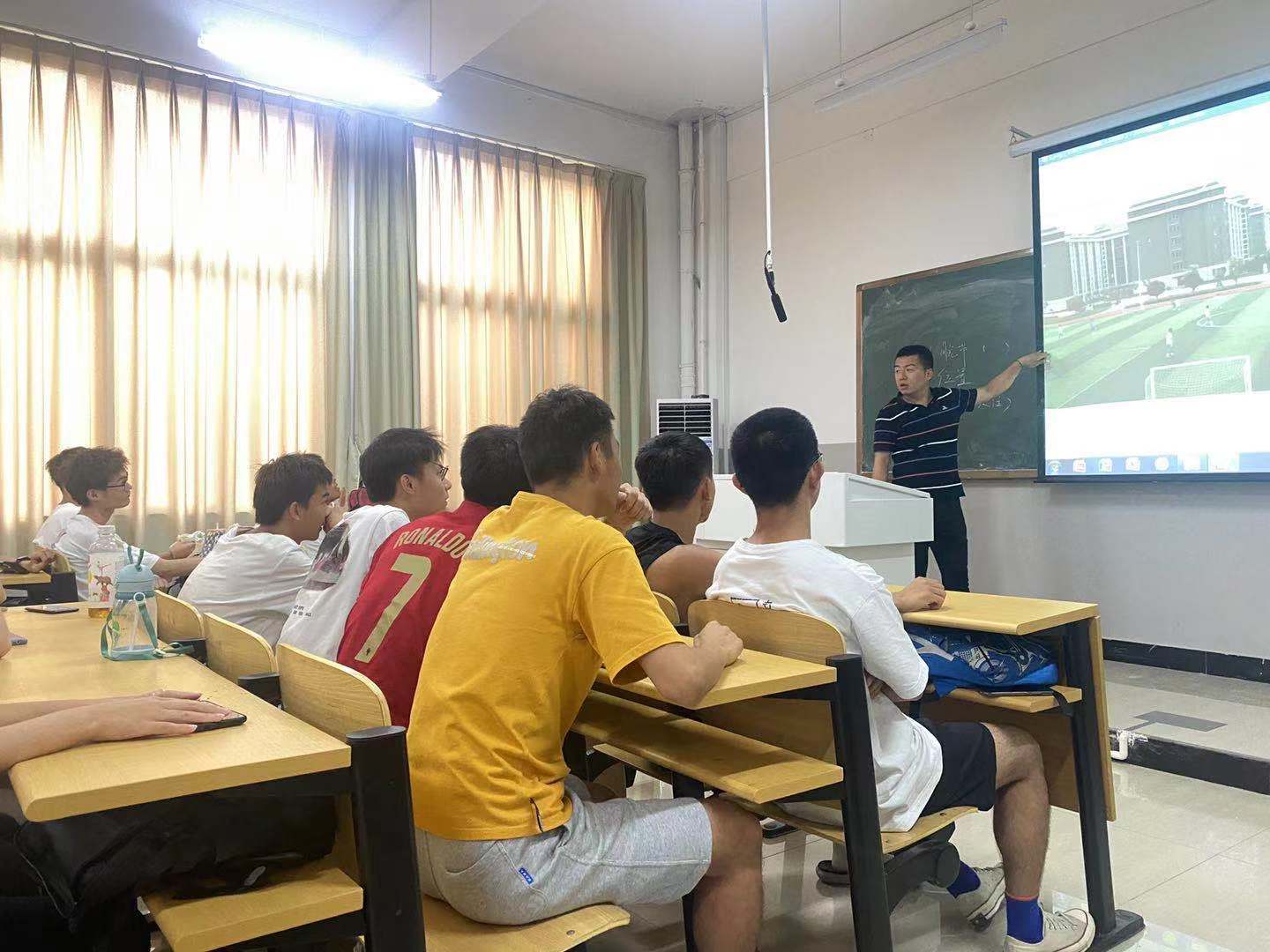 本次讲座着重讲述教师如何安排实践结合理论的内容,使同学们能够冷静和理性的对近期激烈的足球训练与比赛进行分析与探讨。体育教学部主任景欣首先介绍了混合式教学是在对实践训练与室内理论学习反思的基础上,形成理论与实践相结合的教育模式,它能有效地将训练与比赛部分出现的问题系统的罗列展现在学生面前,打破了传统足球统一室外学习训练模式。接着,他又分别从足球发展历程、足球学习资源、足球训练理论、足球比赛理论,科学合理的进行足球赛后分析,使同学们对足球这门课的学习过程与训练方法有了深刻的认识。
