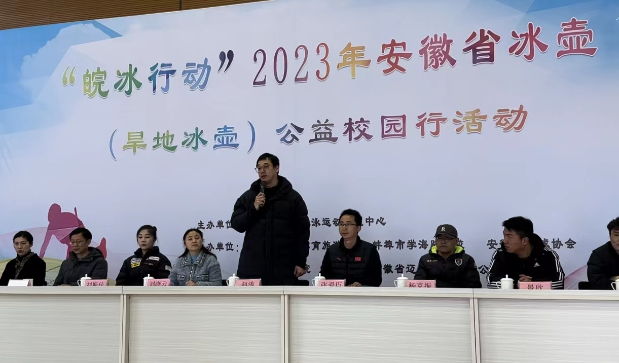 活动开幕式在一阵经久不息的掌声中拉开帷幕。首先,教育部校园冰雪专家、省冰球协会秘书长张爱臣致开幕词,张秘书长提出,虽然安徽省地处南方,天然的冰雪条件相对于北方来说较差,但在“带动三亿人参与冰雪运动”、北冰南展、轮转冰等一系列政策的带动下,我省的冰壶运动迎来了蓬勃发展。各中小学、俱乐部也纷纷开展冰壶、旱地冰壶项目,目前,安徽省冰壶项目呈现出了前所未有的发展活力。