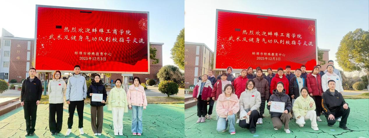 为弘扬中华传统武术文化,传递公益爱心,2025年12月3日,我校体育教学部平超慧老师带领武术及健身气功队,走进蚌埠市特殊教育中心,开展武术与健身气功指导交流活动,为特殊儿童带来一场别开生面的传统运动体验。